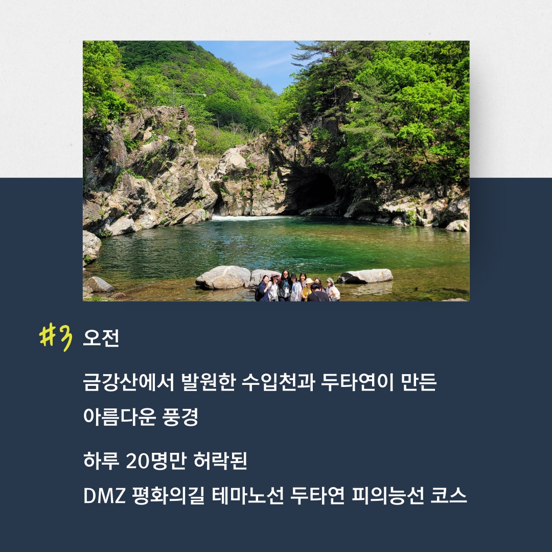 10:00~12:30 DMZ 평화의길 테마노선 두타연 / 피의능선 코스