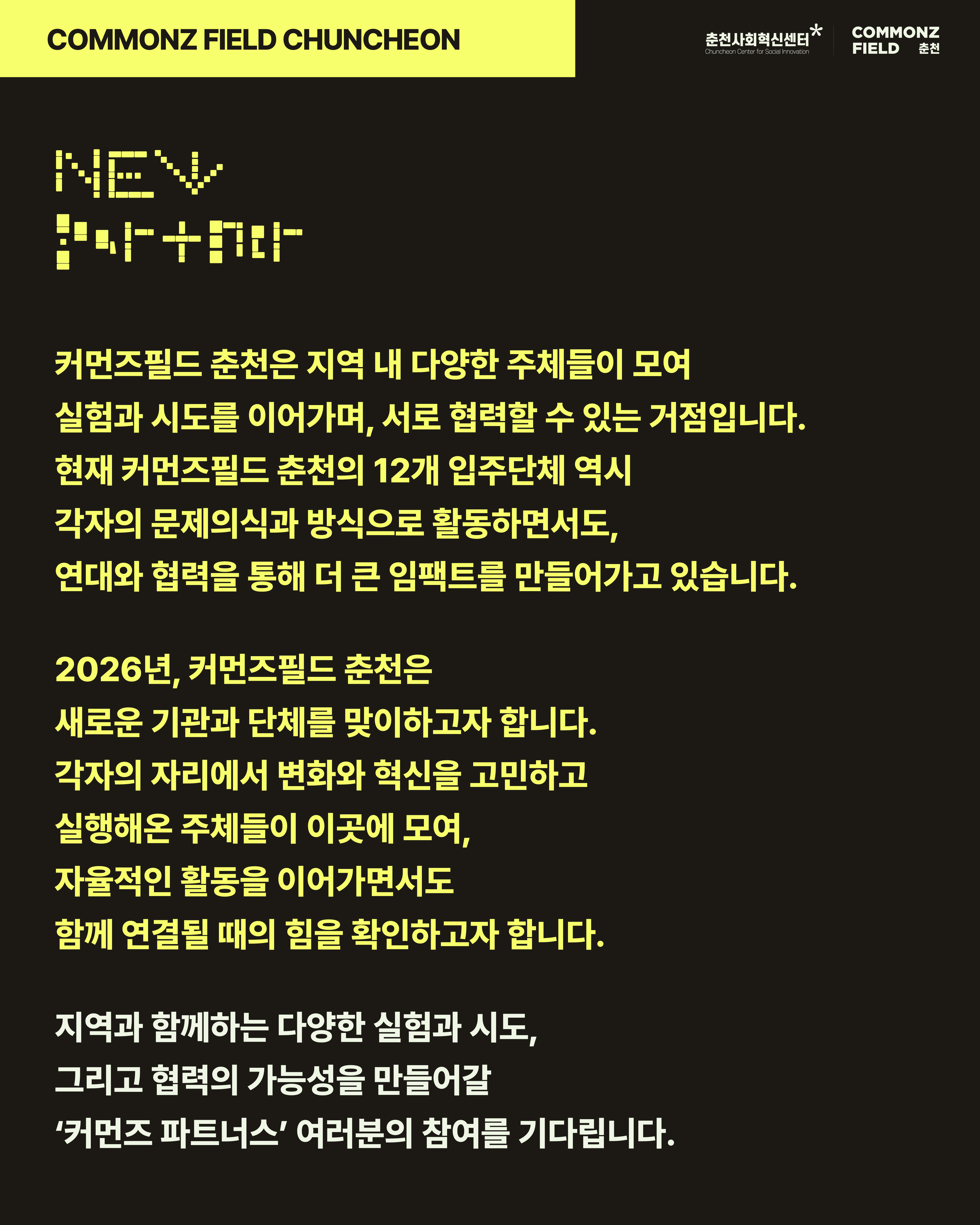 [춘천사회혁신센터] 2026년 커먼즈필드 춘천 입주기관 및 단체 신규 모집 공고