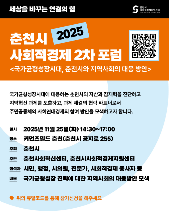 2025 춘천시 사회적경제 2 차 포럼 <국가균형성장시대 , 춘천시와 지역사회의 대응 방안>