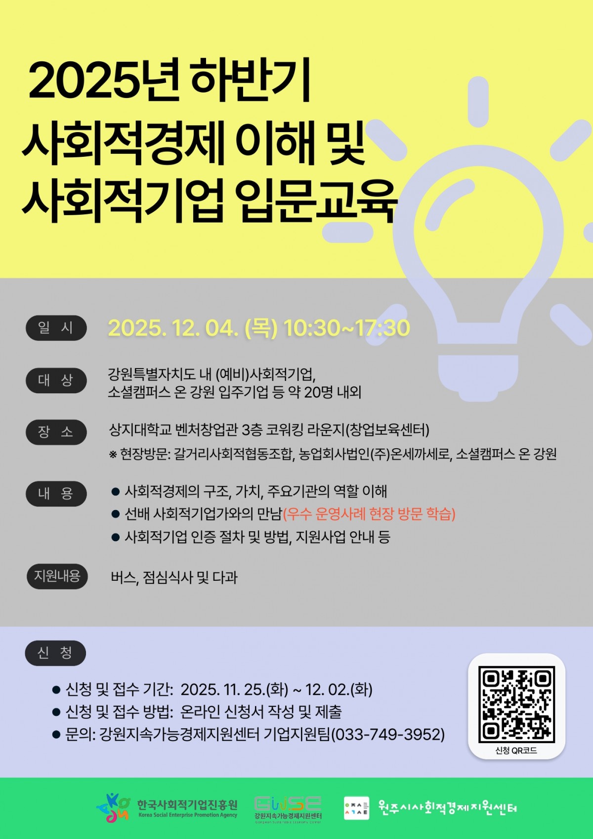 ○ 문 의: 강원지속가능경제지원센터, 033-749-3952