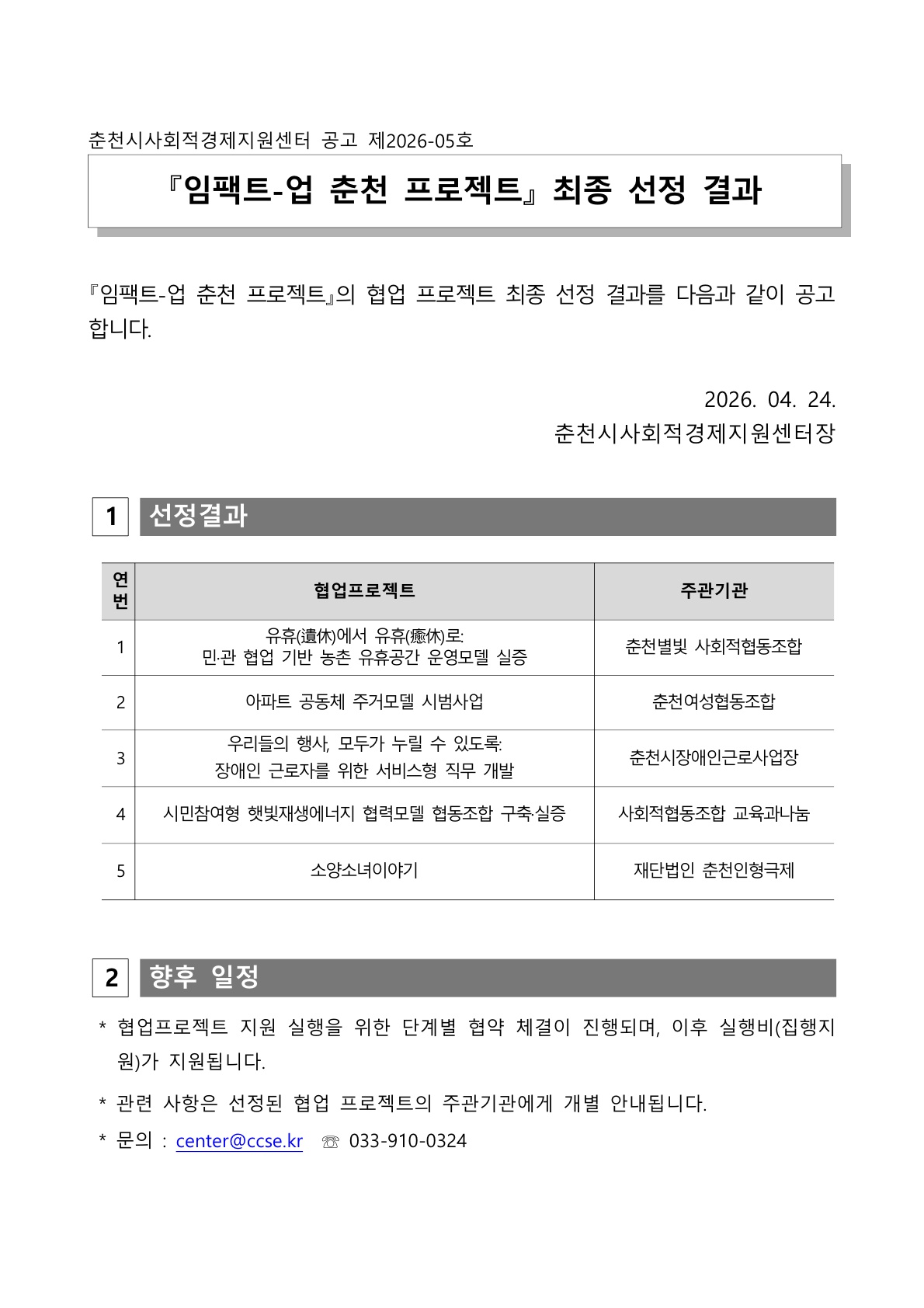 [임팩트-업 춘천 프로젝트] 최종 선정 결과