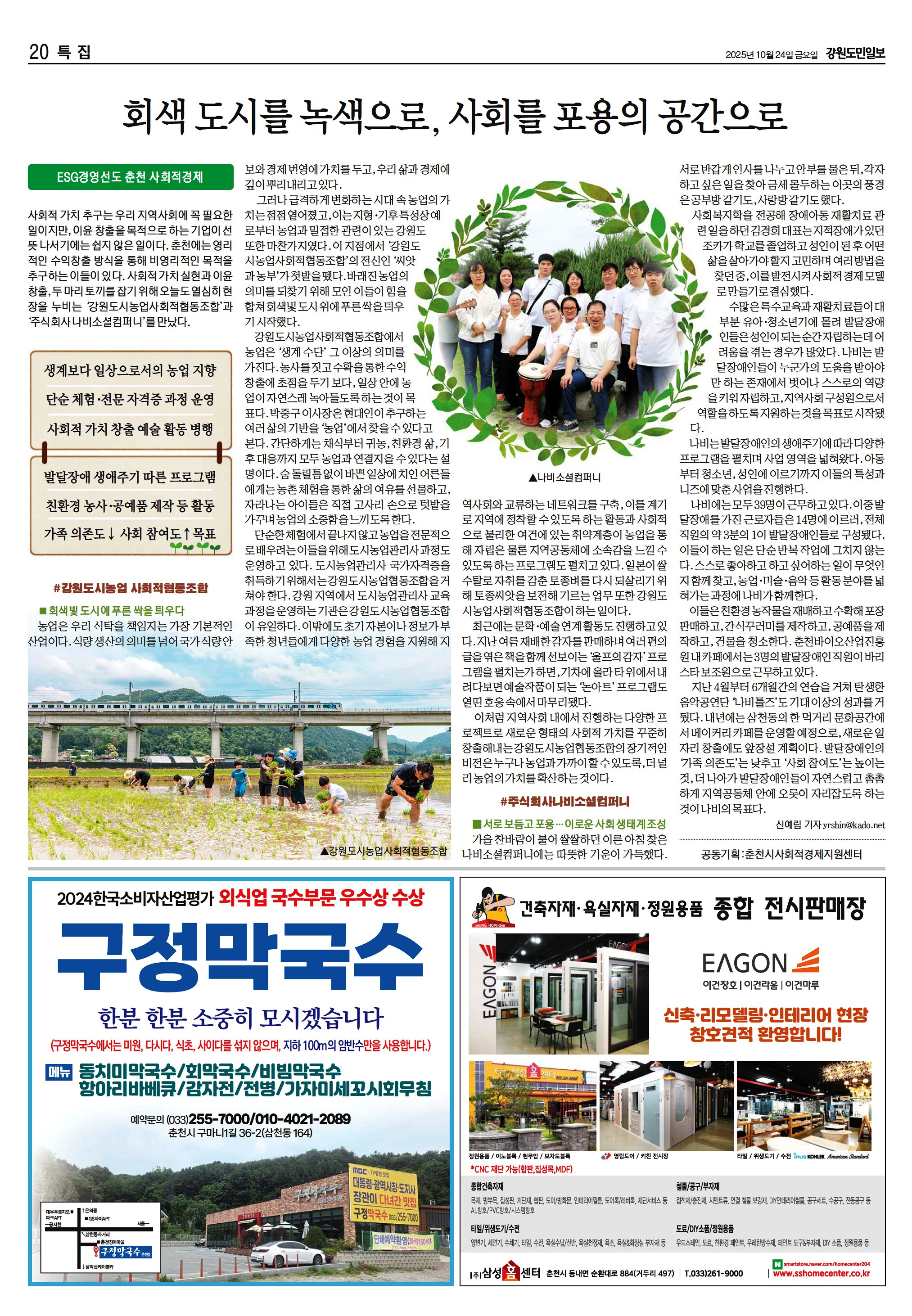 [강원도민일보] 회색 도시를 녹색으로, 사회를 포용의 공간으로 (강원도시농업사회적협동조합, 주식회사 나비소셜컴퍼니)
