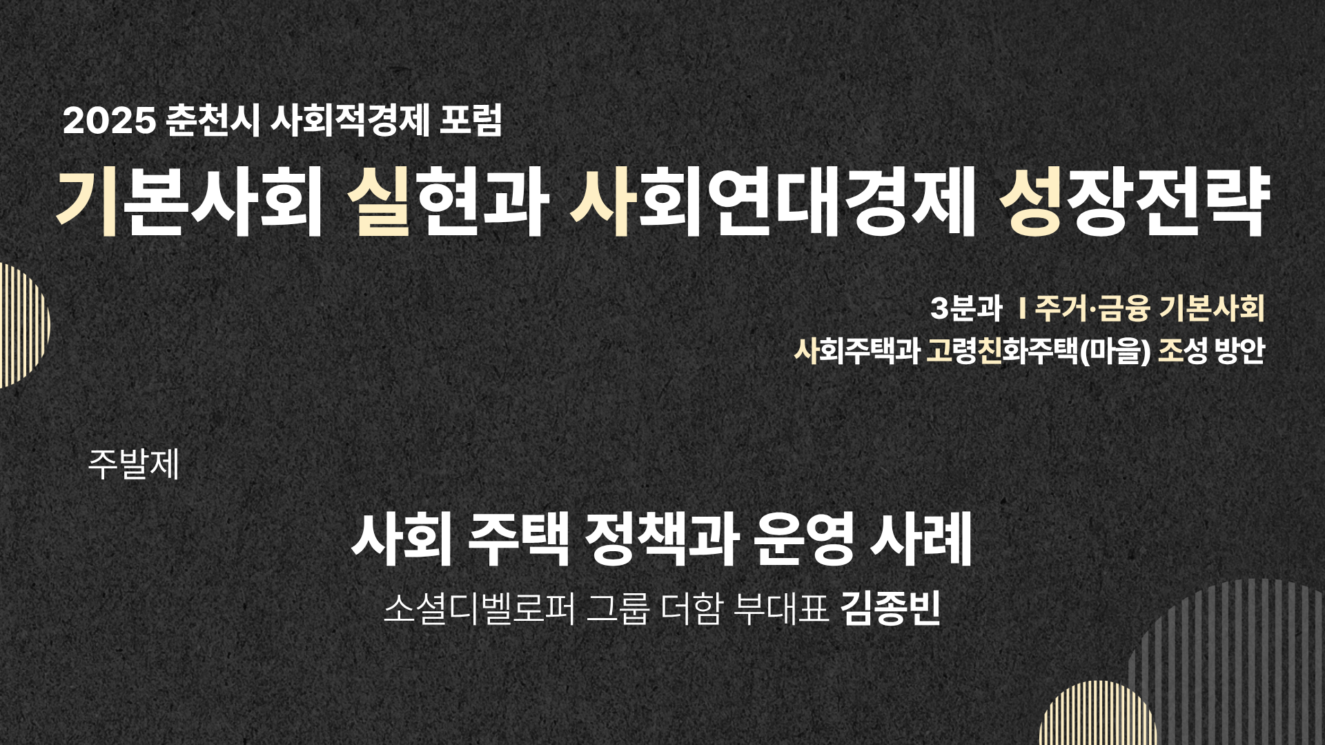 [2025 춘천 사회적경제 2차 포럼] (3분과) 사회주택과 고령친화주택(마을) 조성 방안 : 사회주택과 정책과 운영 사례