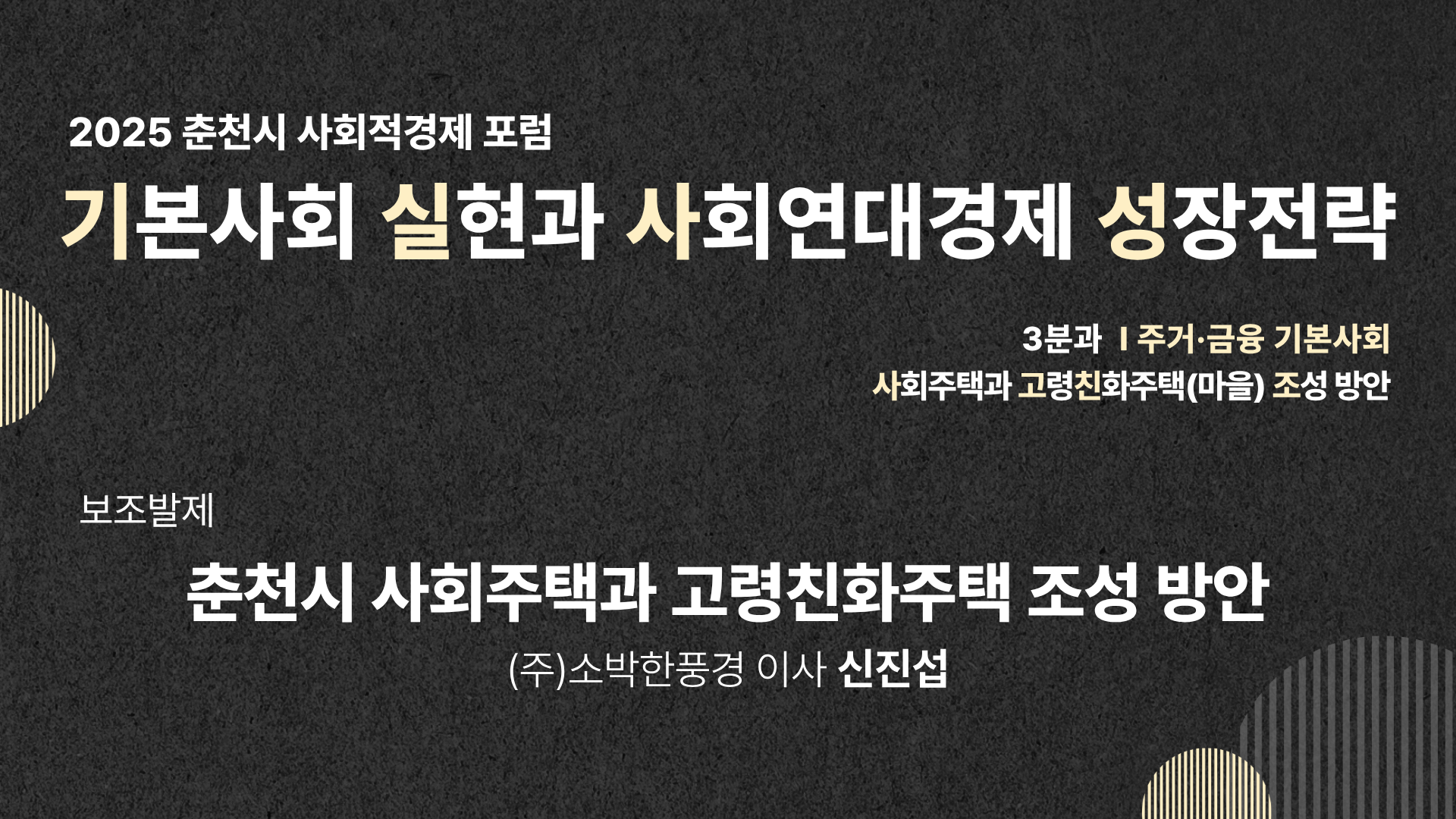 [2025 춘천 사회적경제 2차 포럼] (3분과) 사회주택과 고령친화주택(마을) 조성 방안 : 춘천시 사회주택과 고령친화주택 조성 방안